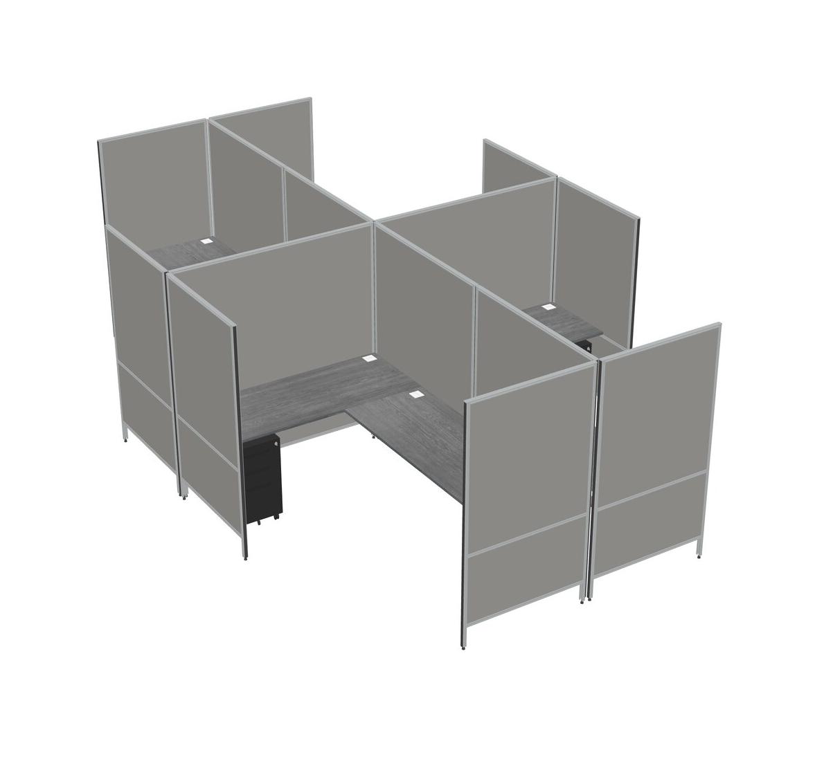 Grey Modern Modular Quad L-Shaped Panel System + Metal Mobile Drawers