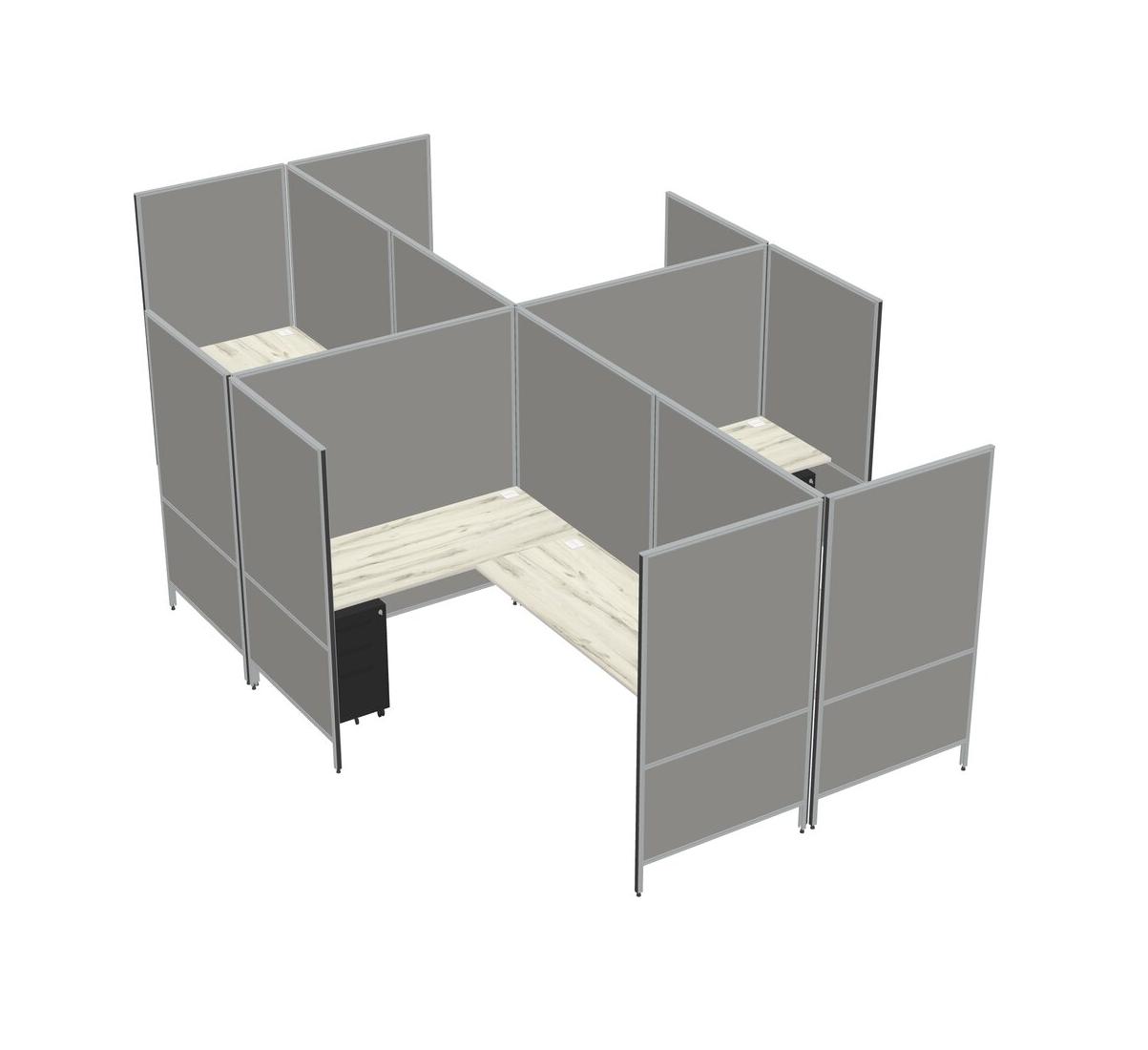 Heinne Holz Modern Modular Quad L-Shaped Panel System + Metal Mobile Drawers