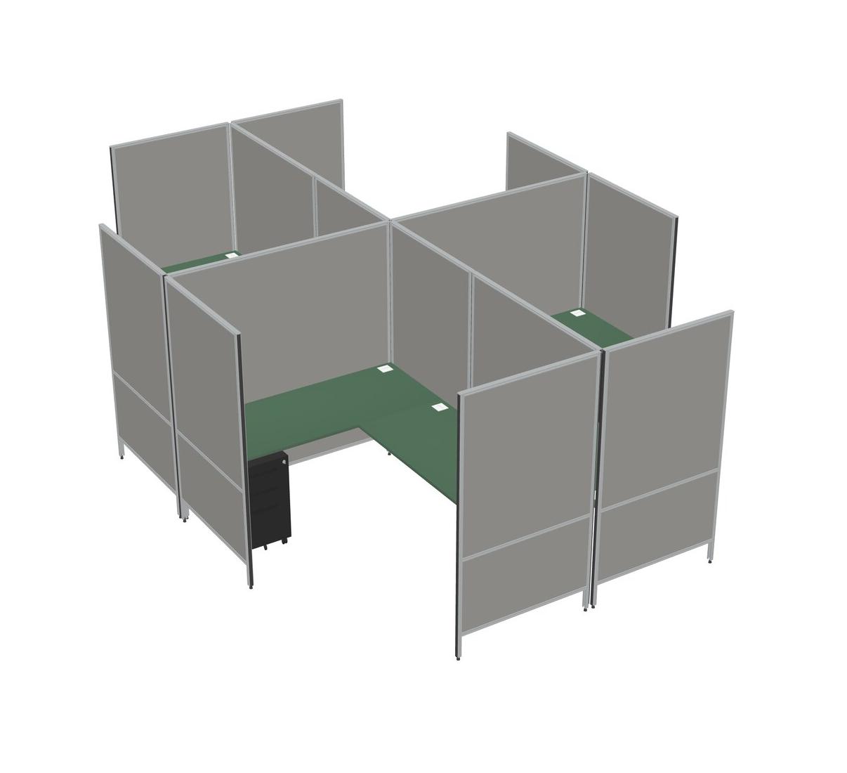 Green Modern Modular Quad L-Shaped Panel System + Metal Mobile Drawers