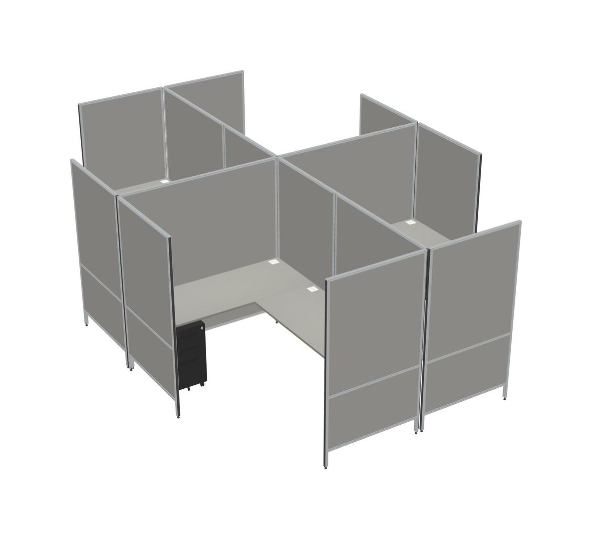 Grey Shadows Modern Modular Quad L-Shaped Panel System + Metal Mobile Drawers