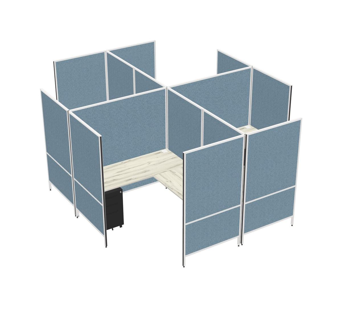 Heinne Holz Modern Modular Quad L-Shaped Panel System + Metal Mobile Drawers