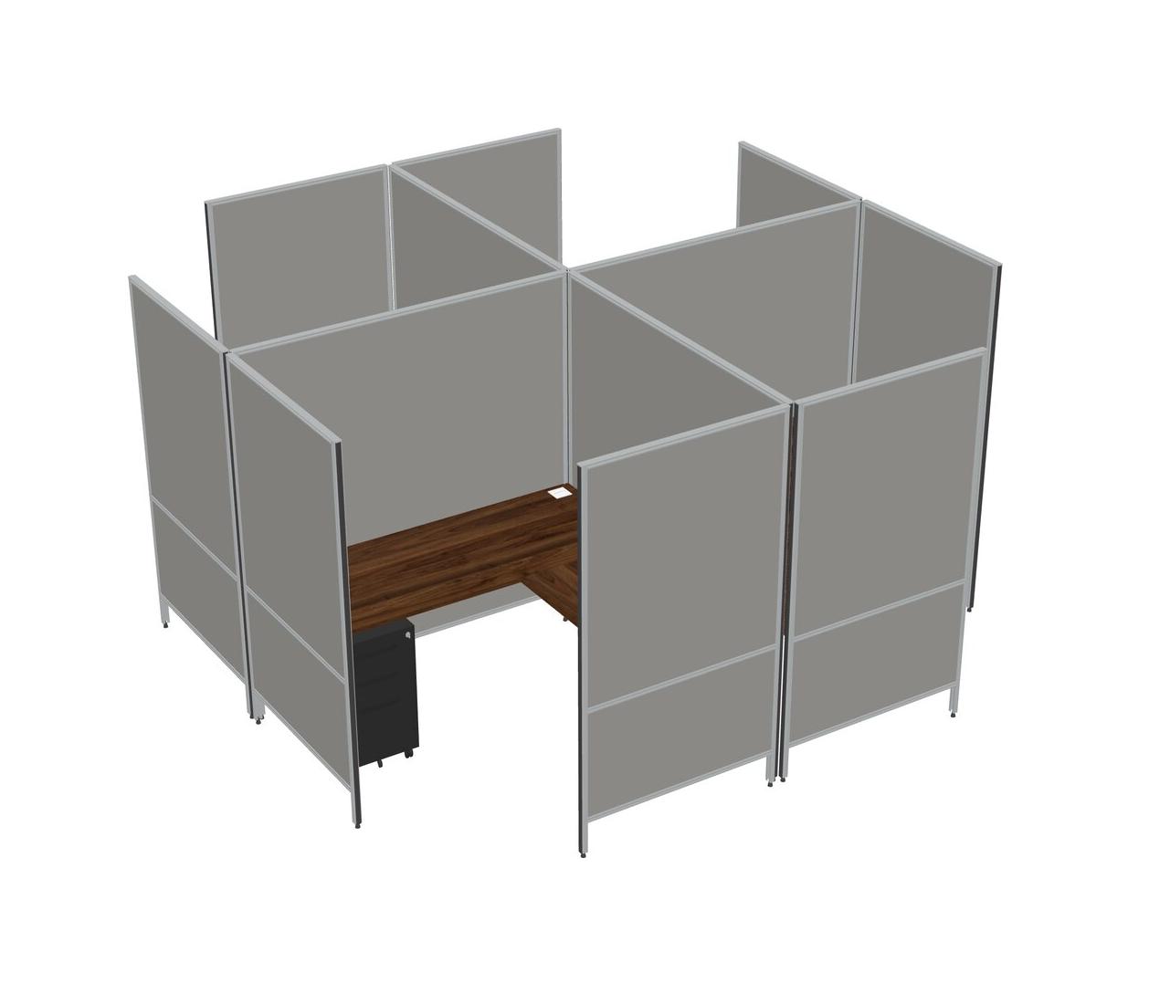 Columbia Walnut Modern Modular Quad L-Shaped Panel System + Metal Mobile Drawers
