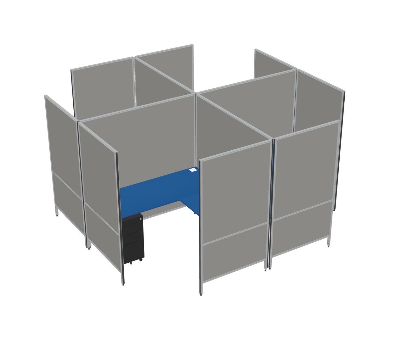 Prism Blue Modern Modular Quad L-Shaped Panel System + Metal Mobile Drawers