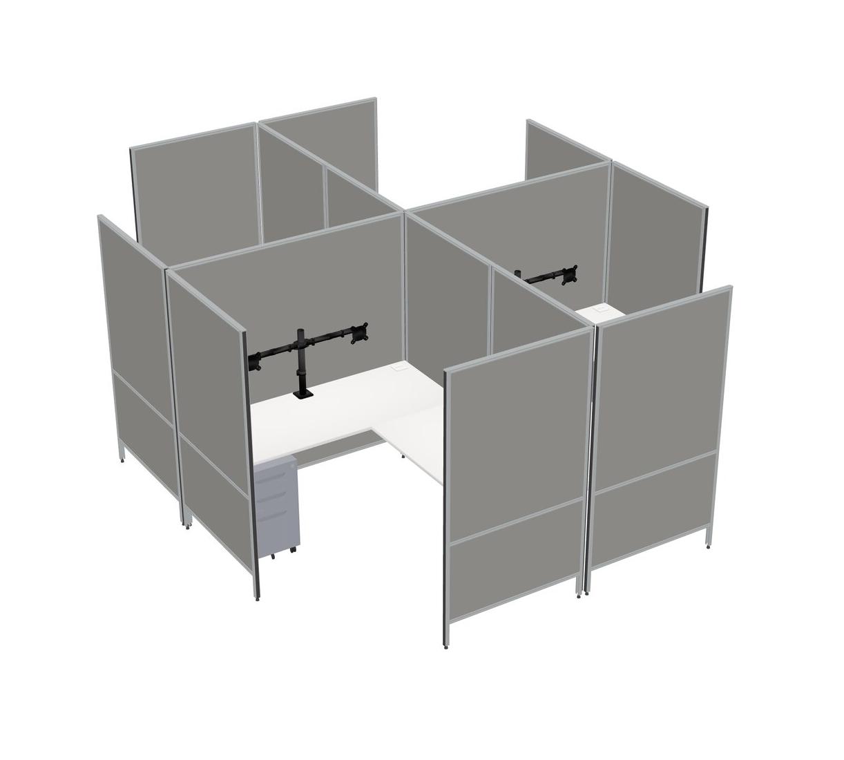 White Modern Modular Quad L-Shaped Panel System + Metal Mobile Drawers + Monitor Arm (double Arms)