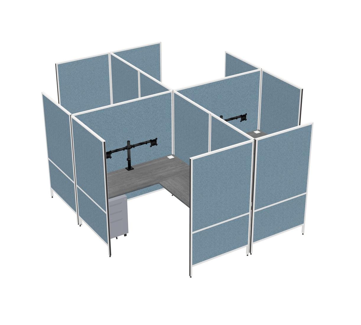 Grey Modern Modular Quad L-Shaped Panel System + Metal Mobile Drawers + Monitor Arm (double Arms)