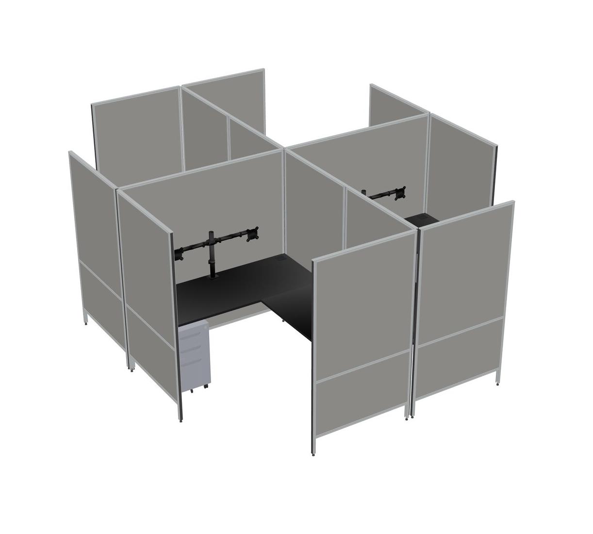 Black Modern Modular Quad L-Shaped Panel System + Metal Mobile Drawers + Monitor Arm (double Arms)