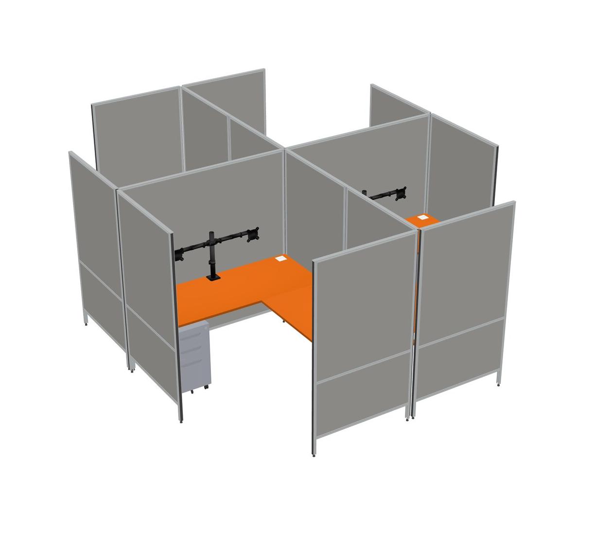 Orange Modern Modular Quad L-Shaped Panel System + Metal Mobile Drawers + Monitor Arm (double Arms)