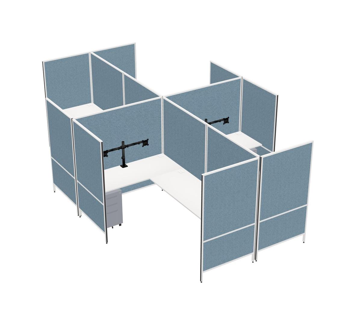 White Modern Modular Quad L-Shaped Panel System + Metal Mobile Drawers + Monitor Arm (double Arms)