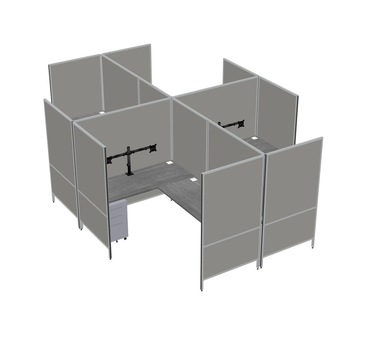 Grey Modern Modular Quad L-Shaped Panel System + Metal Mobile Drawers + Monitor Arm (double Arms)