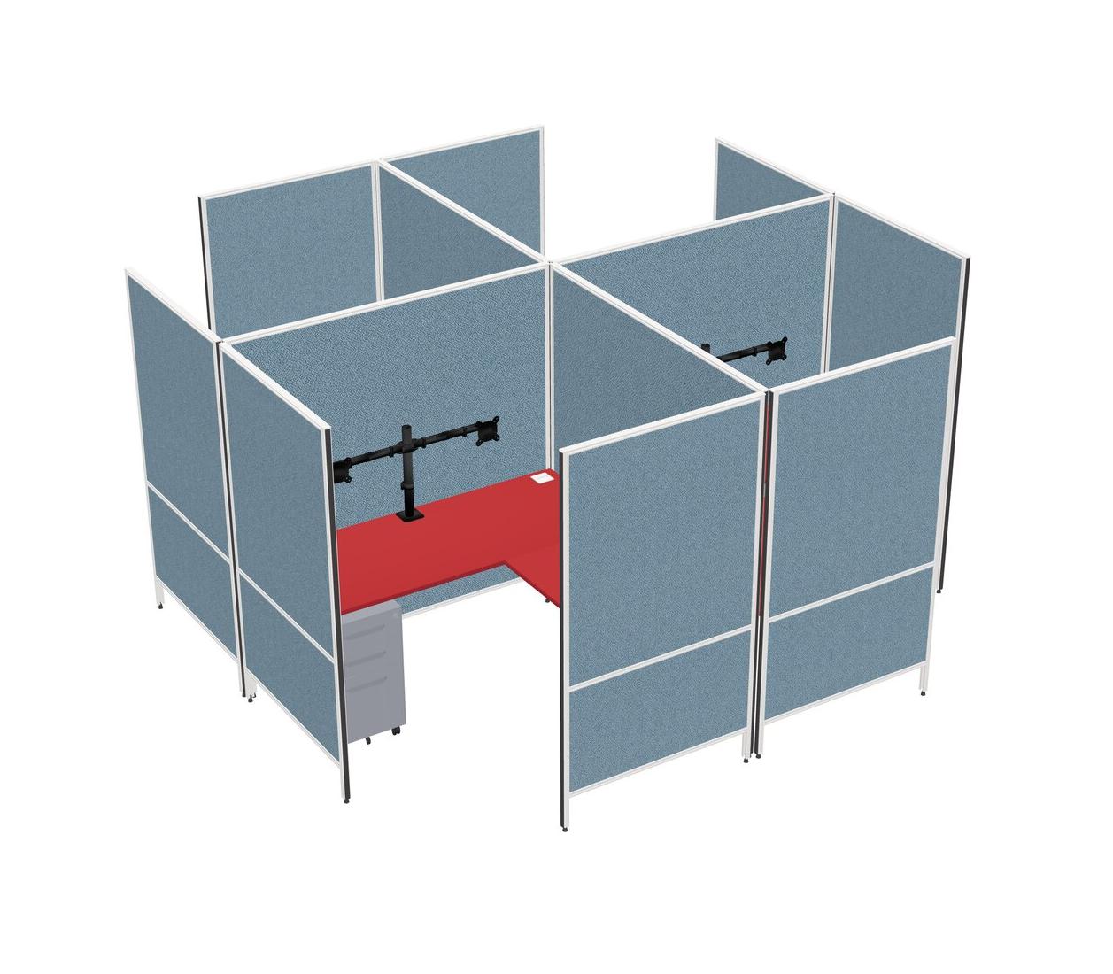 Prism Red Modern Modular Quad L-Shaped Panel System + Metal Mobile Drawers + Monitor Arm (double Arms)