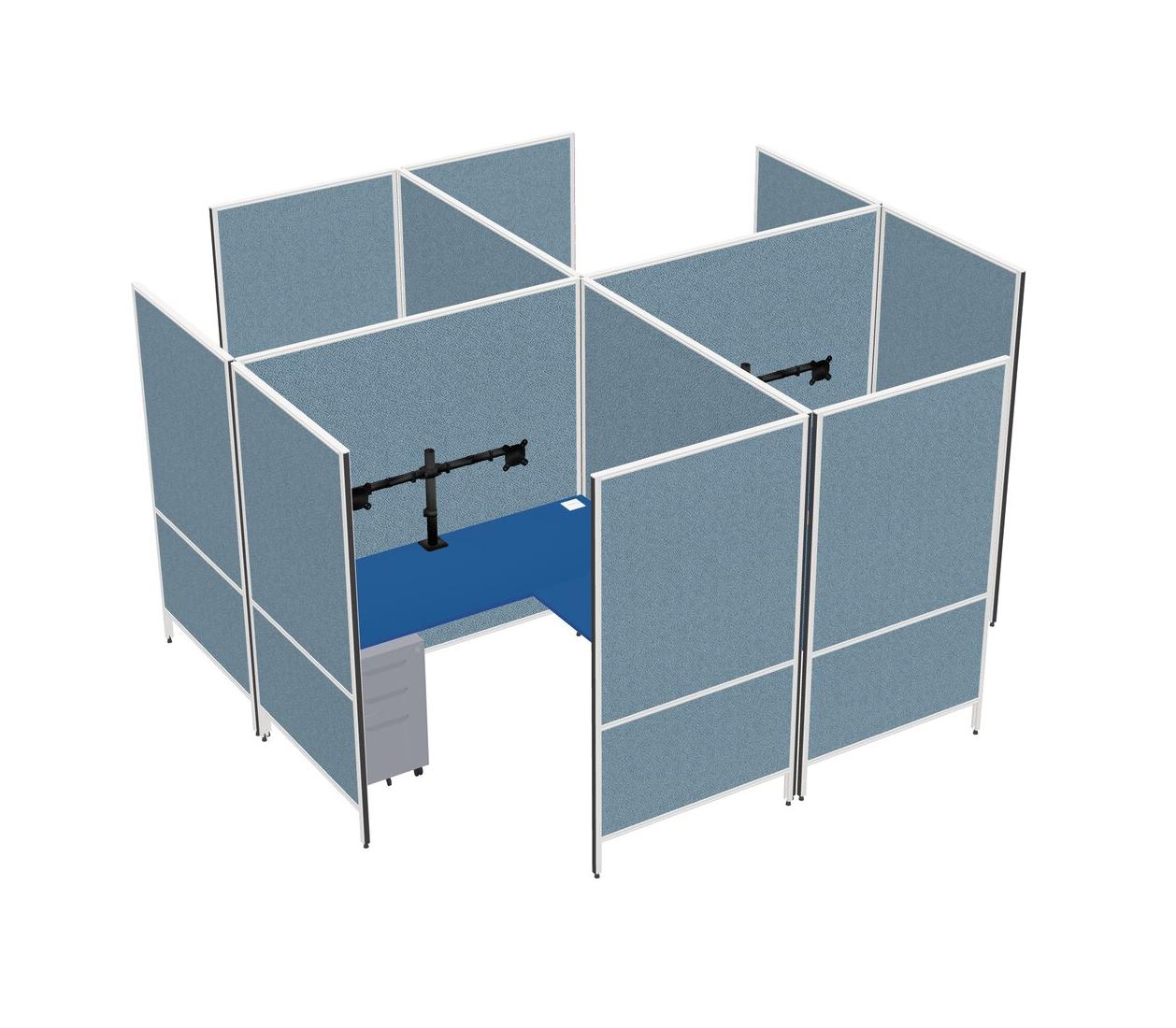 Prism Blue Modern Modular Quad L-Shaped Panel System + Metal Mobile Drawers + Monitor Arm (double Arms)