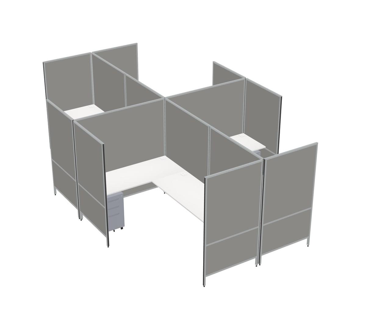 White Modern Modular Quad L-Shaped Panel System + Metal Mobile Drawers