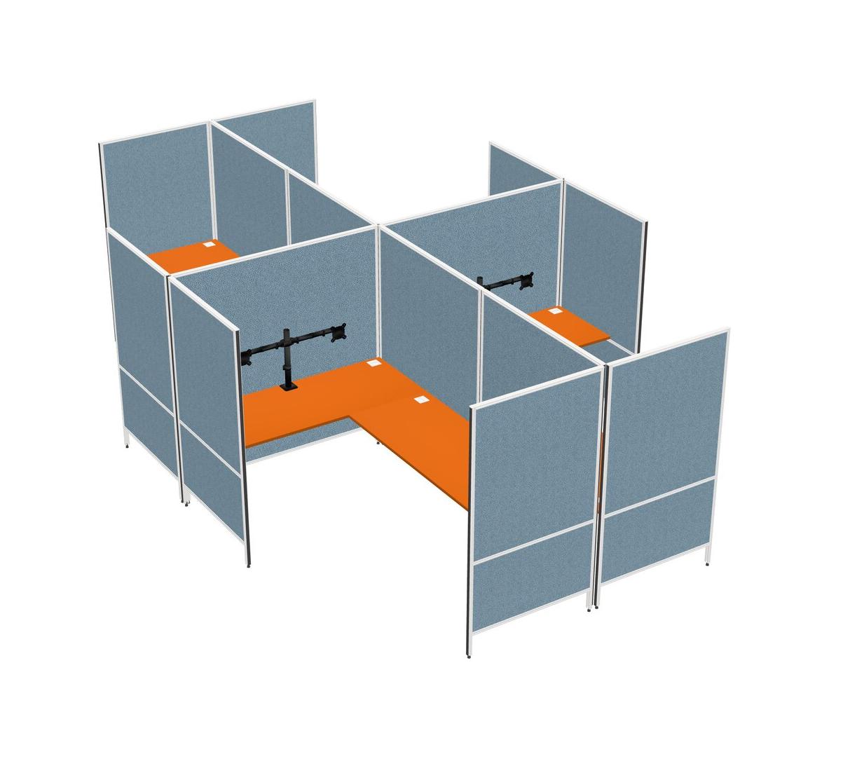 Orange Modern Modular Quad L-Shaped Panel System + Monitor Arm (double Arms)
