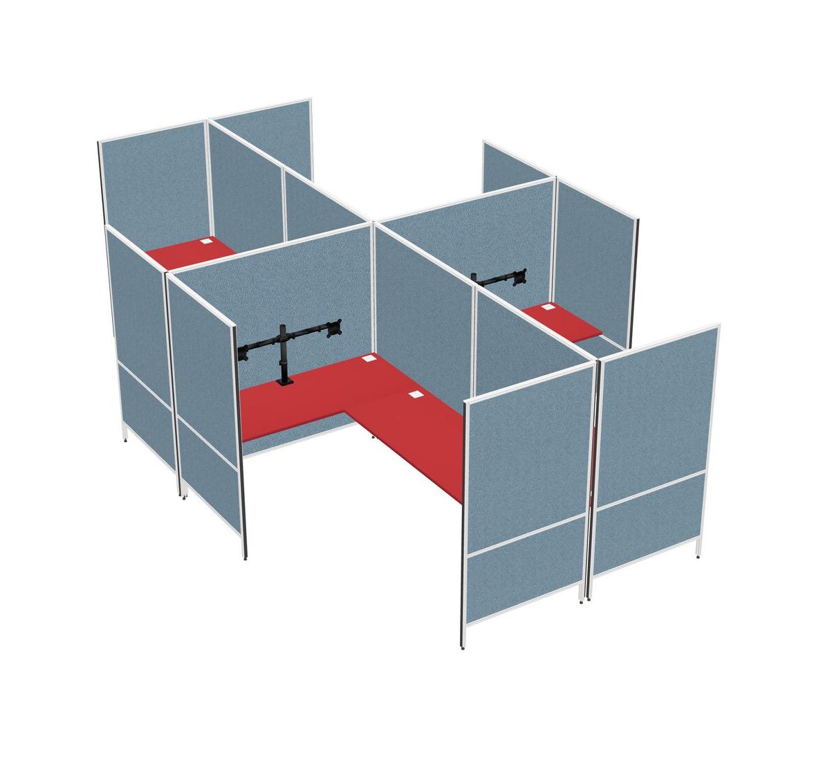 Prism Red Modern Modular Quad L-Shaped Panel System + Monitor Arm (double Arms)