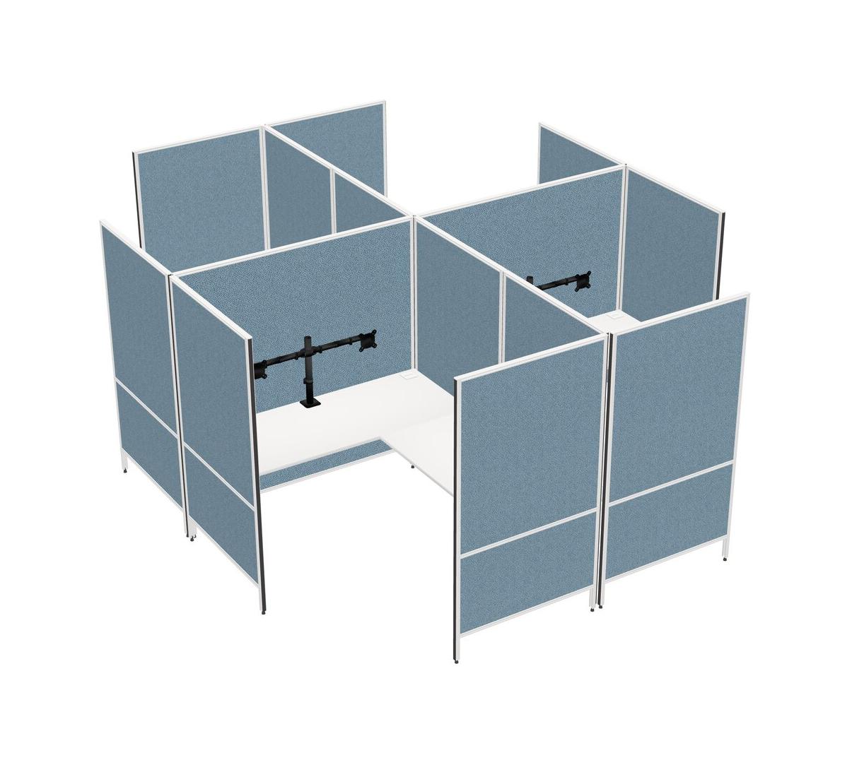 White Modern Modular Quad L-Shaped Panel System + Monitor Arm (double Arms)