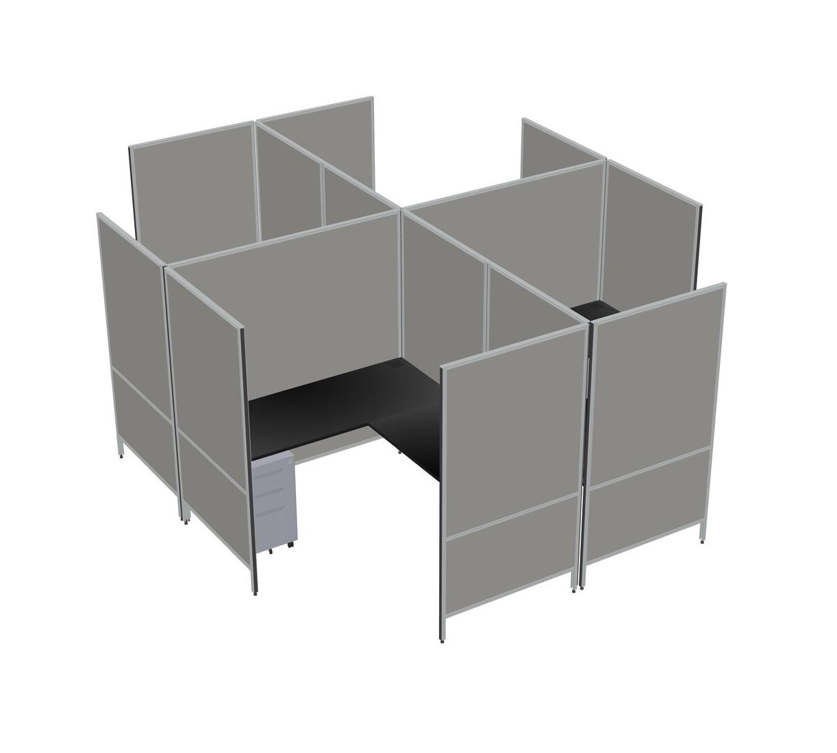 Black Modern Modular Quad L-Shaped Panel System + Metal Mobile Drawers