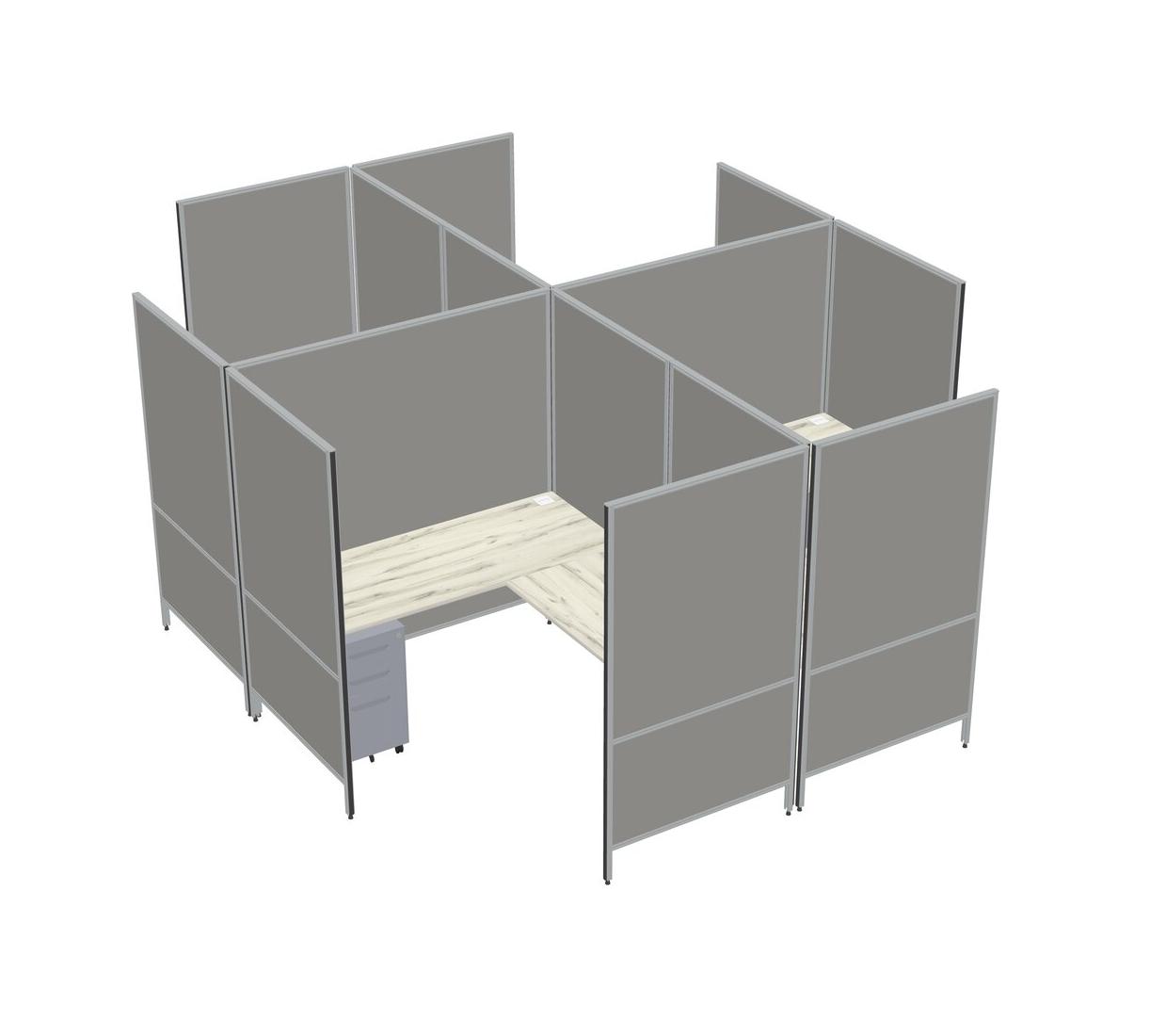 Heinne Holz Modern Modular Quad L-Shaped Panel System + Metal Mobile Drawers