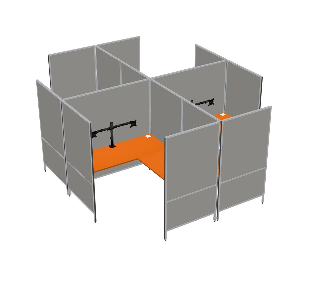 Orange Modern Modular Quad L-Shaped Panel System + Monitor Arm (double Arms)