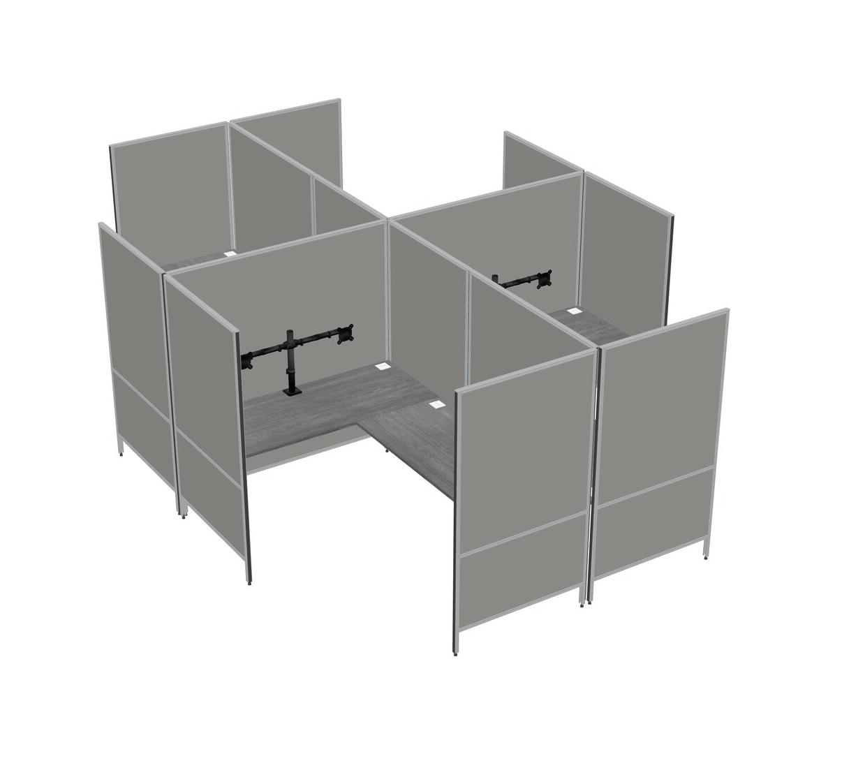 Grey Modern Modular Quad L-Shaped Panel System + Monitor Arm (double Arms)