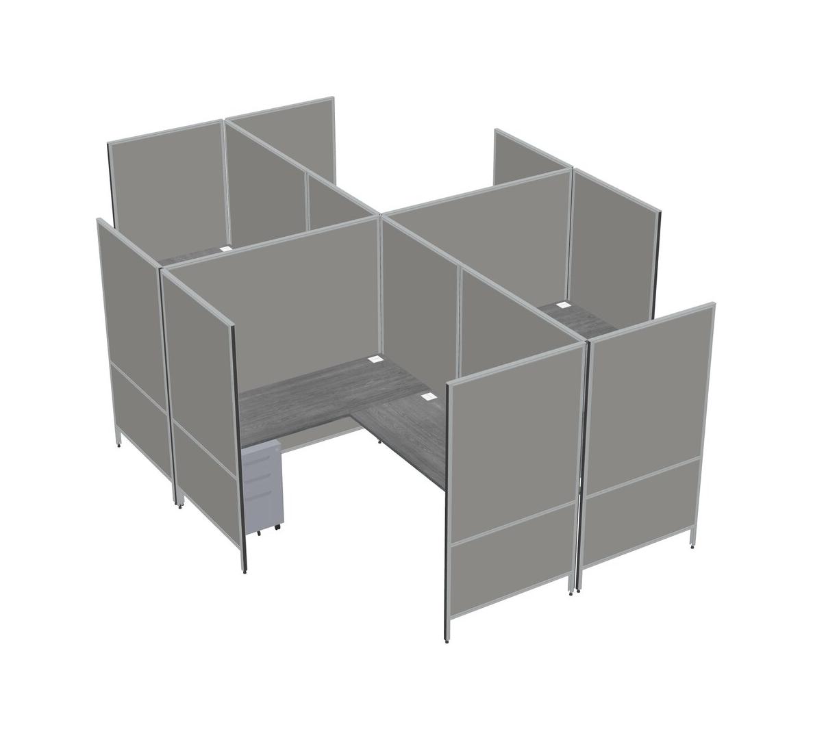 Grey Modern Modular Quad L-Shaped Panel System + Metal Mobile Drawers