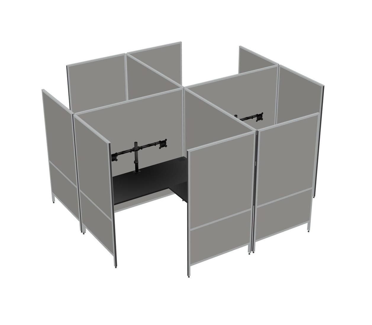 Black Modern Modular Quad L-Shaped Panel System + Monitor Arm (double Arms)