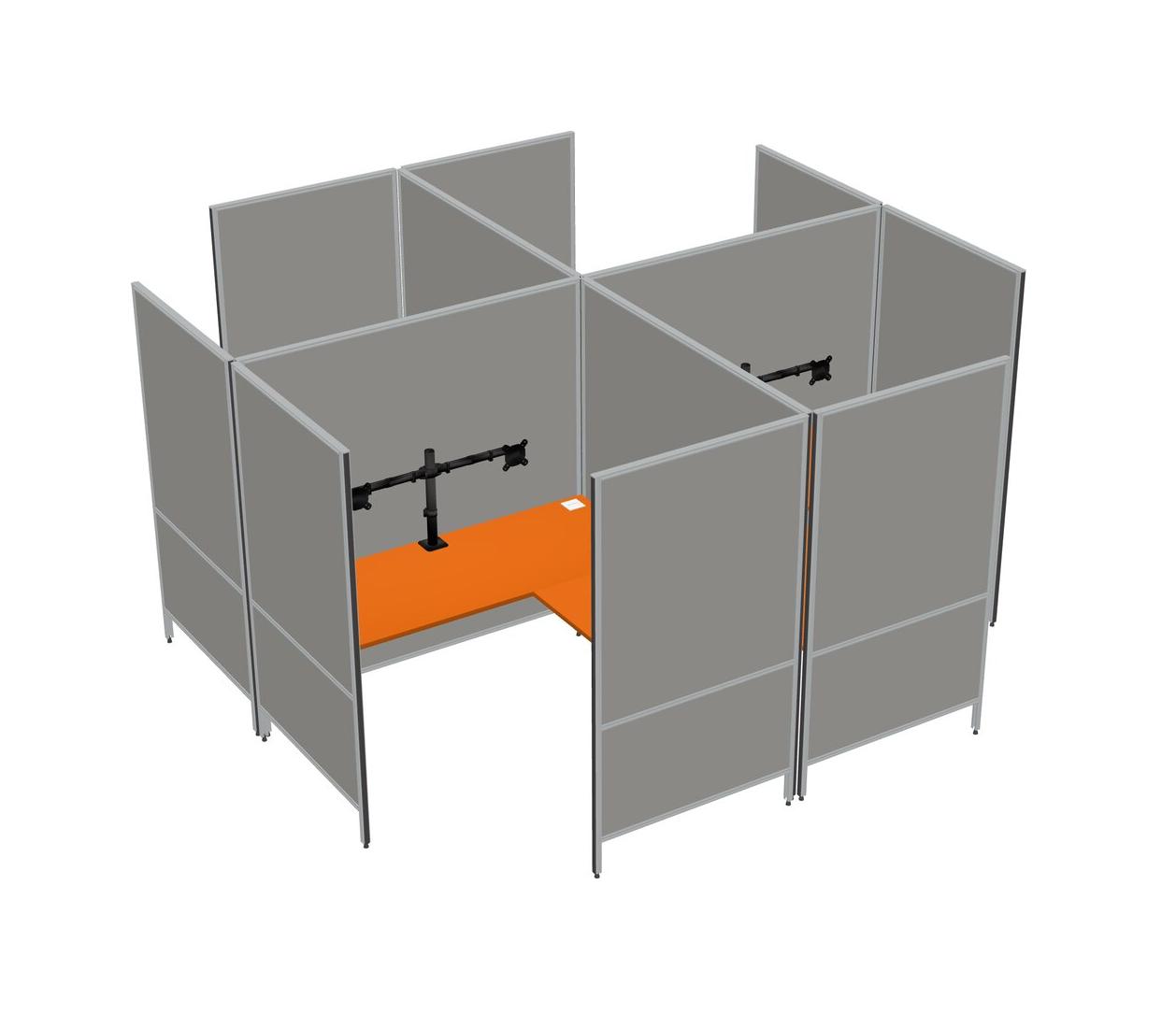 Orange Modern Modular Quad L-Shaped Panel System + Monitor Arm (double Arms)