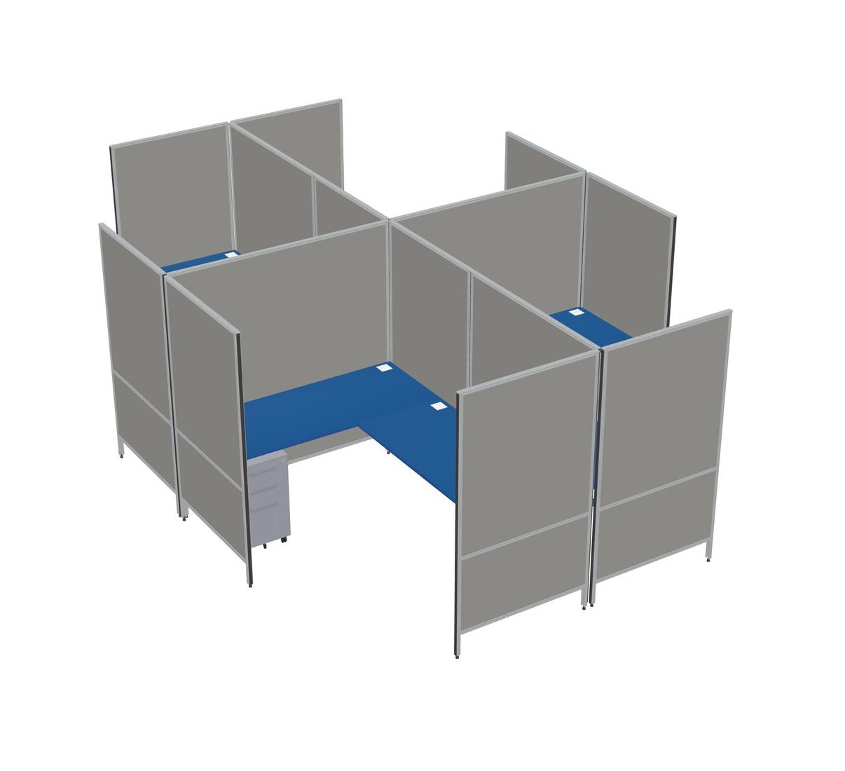 Prism Blue Modern Modular Quad L-Shaped Panel System + Metal Mobile Drawers