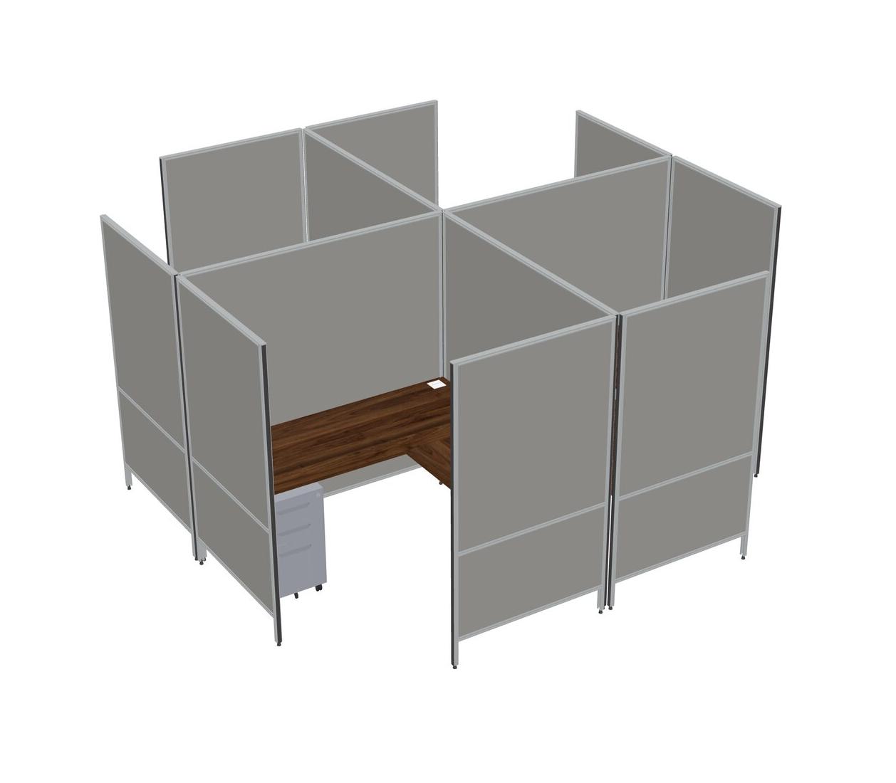 Columbia Walnut Modern Modular Quad L-Shaped Panel System + Metal Mobile Drawers