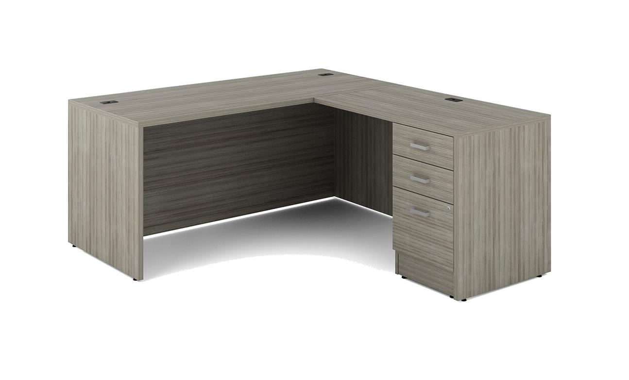 Noce Grigio-NGL L-Shaped Office Desk Commercial Grade With Fixed Drawers