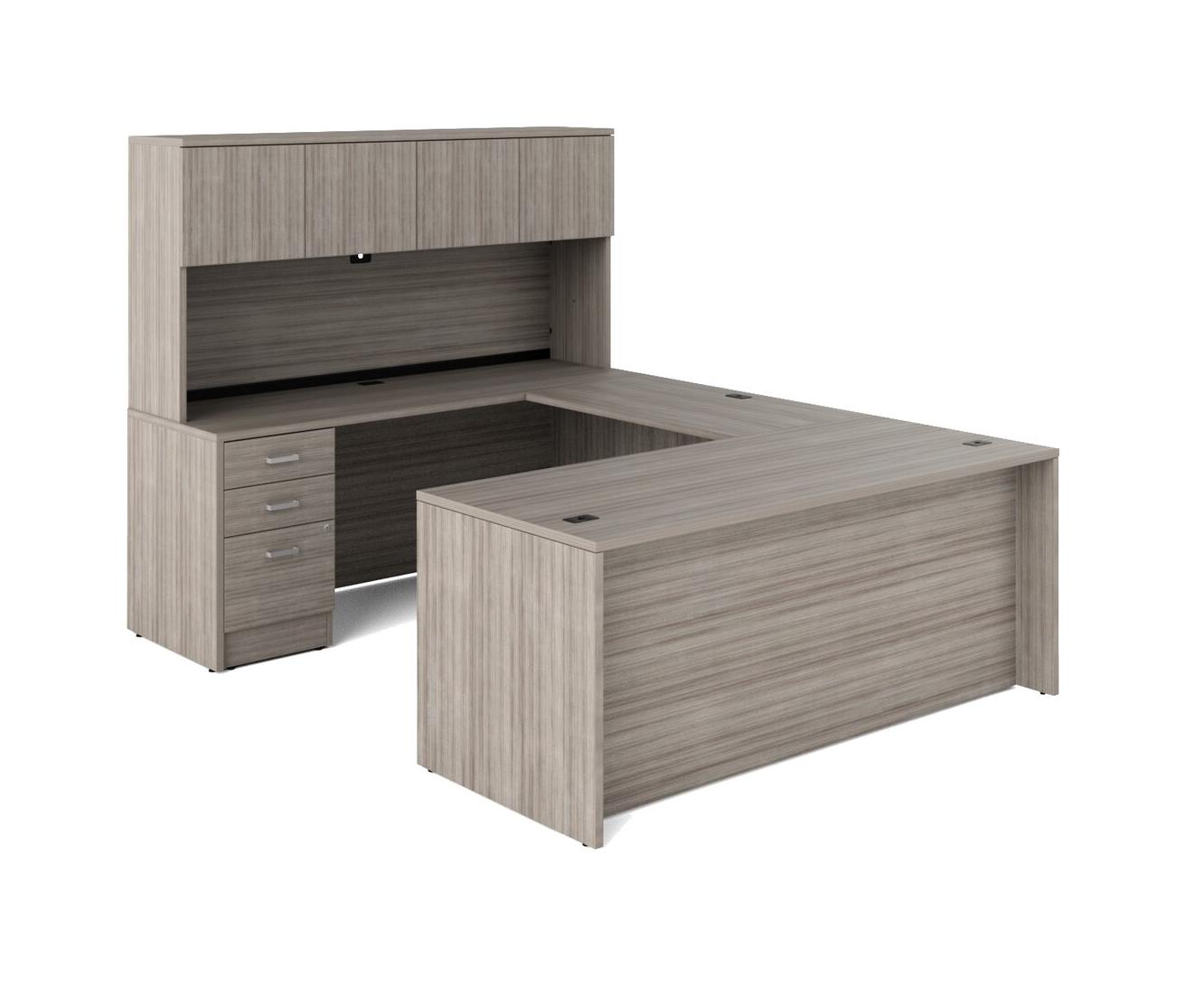 Noce Grigio-NGL U-Shaped Office Desk Commercial Grade With Fixed Drawers + With Hutch
