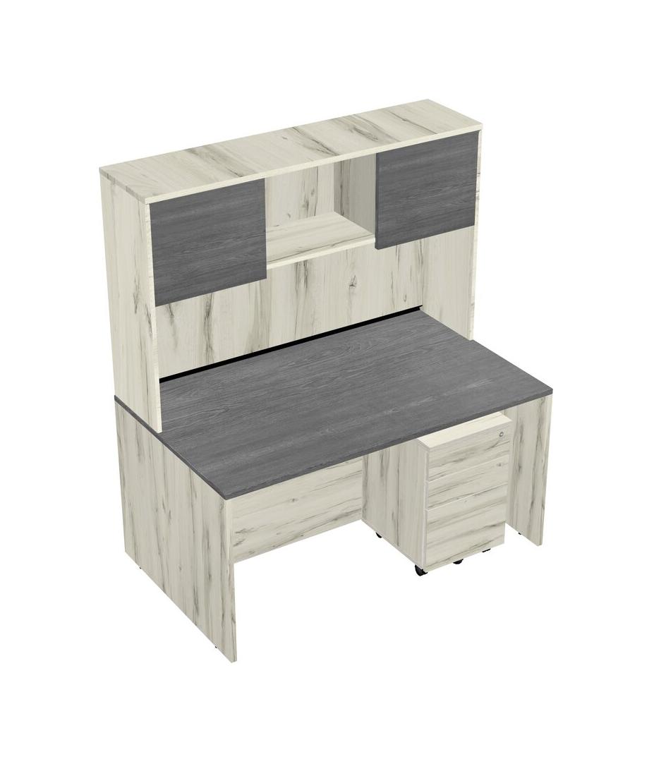Grey Rectangular Office Desk Plus Heinne Holz Wooden Mobile Drawers And Heinne Holz Hutch