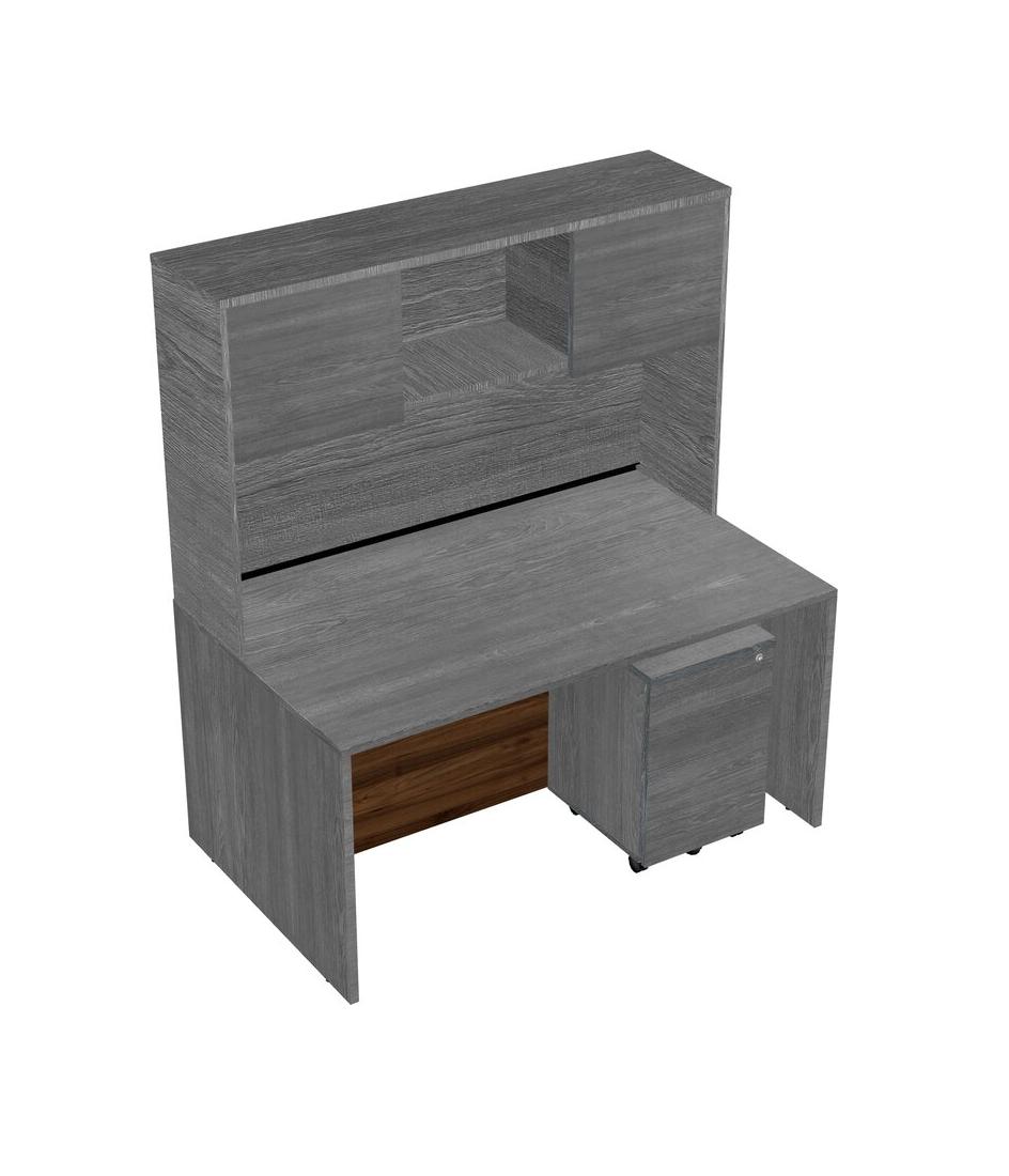 Grey Rectangular Office Desk Plus Grey Wooden Mobile Drawers And Grey Hutch