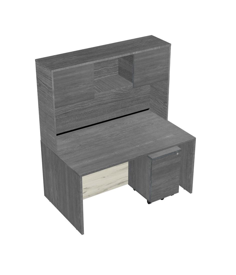 Grey Rectangular Office Desk Plus Grey Wooden Mobile Drawers And Grey Hutch