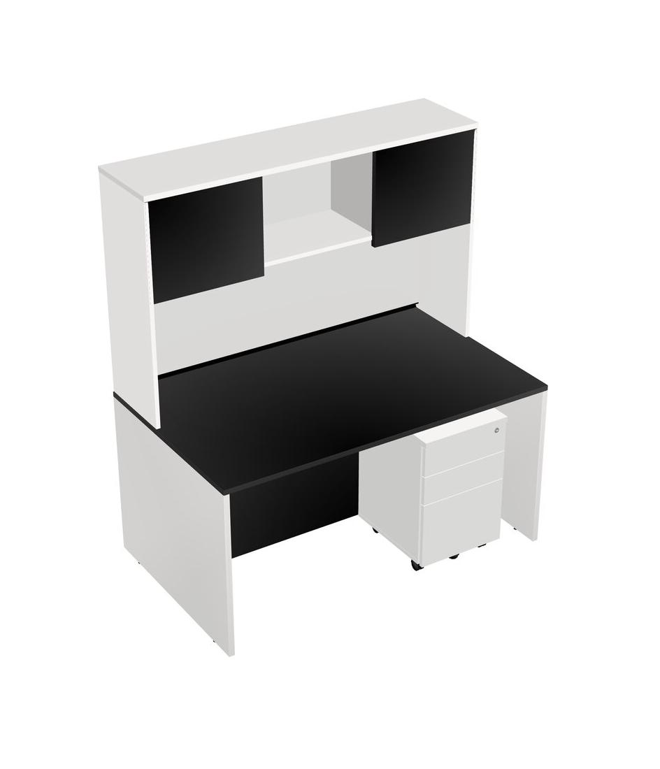 Black Rectangular Office Desk Plus White Wooden Mobile Drawers And White Hutch