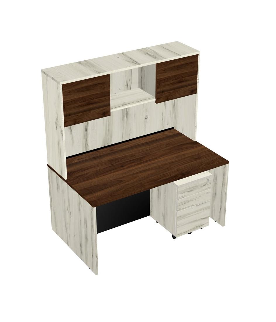 Columbia Walnut Rectangular Office Desk Plus Heinne Holz Wooden Mobile Drawers And Heinne Holz Hutch