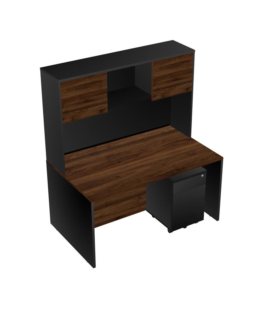 Columbia Walnut Rectangular Office Desk Plus Black Wooden Mobile Drawers And Black Hutch