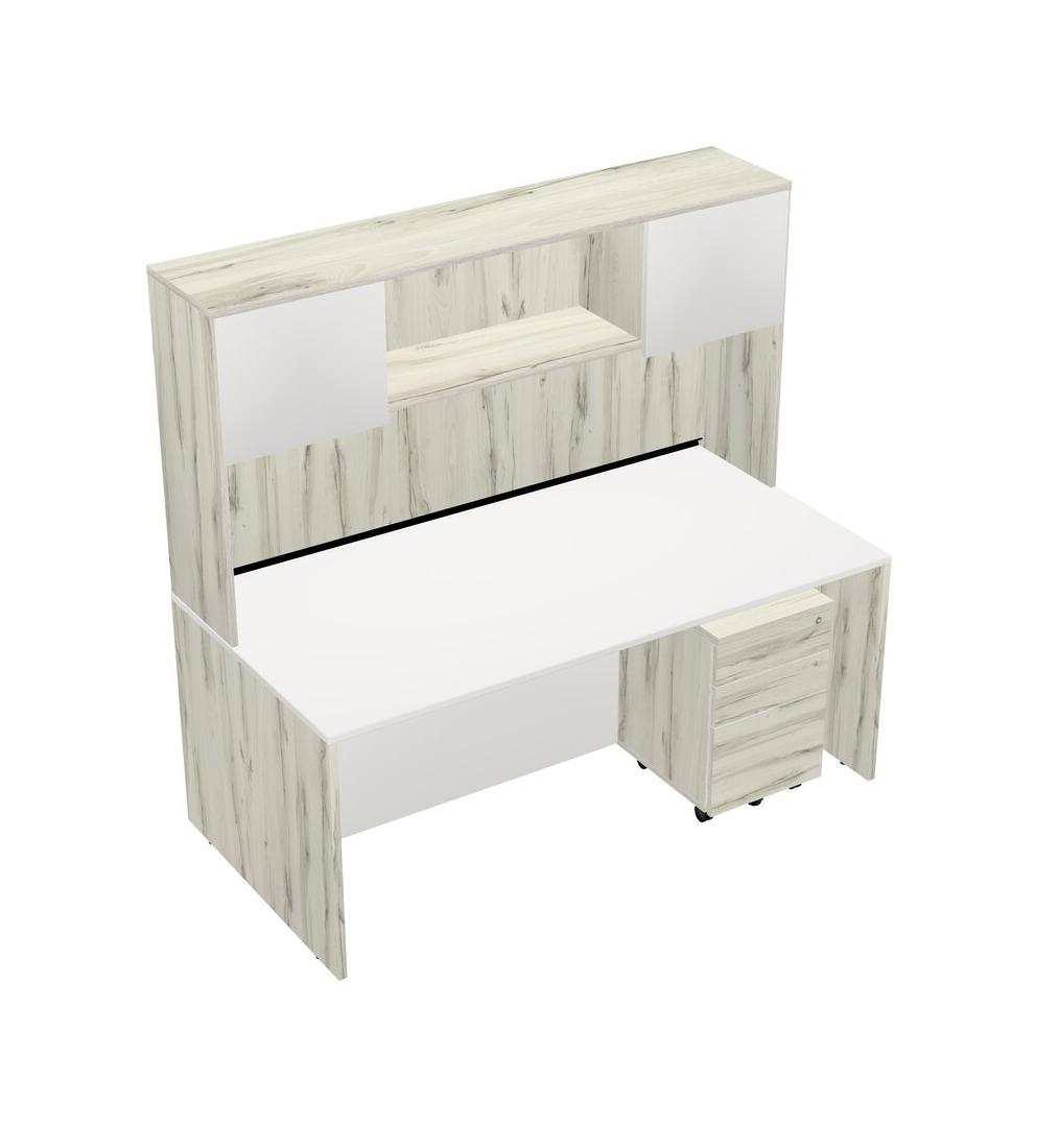 White Rectangular Office Desk Plus Heinne Holz Wooden Mobile Drawers And Heinne Holz Hutch
