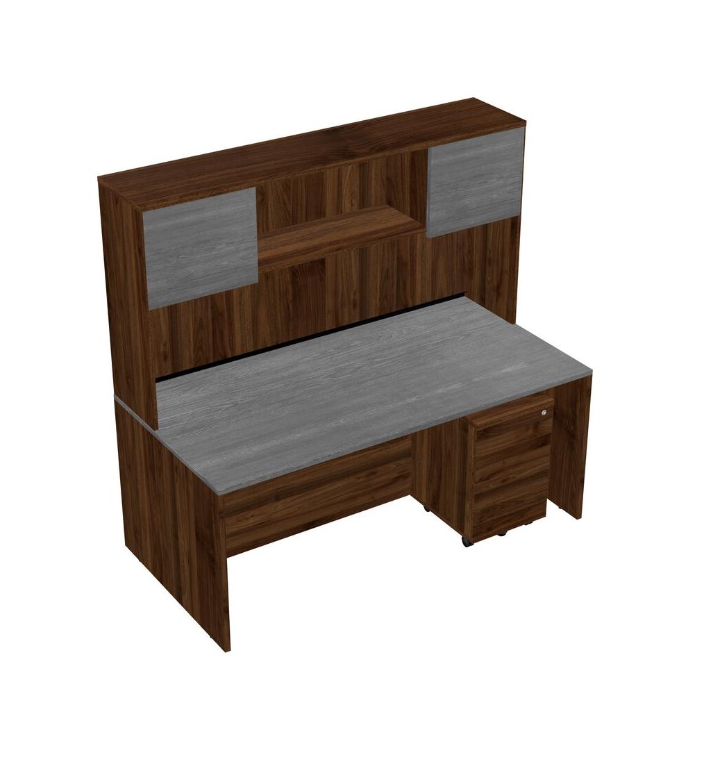 Grey Rectangular Office Desk Plus Columbia Walnut Wooden Mobile Drawers And Columbia Walnut Hutch
