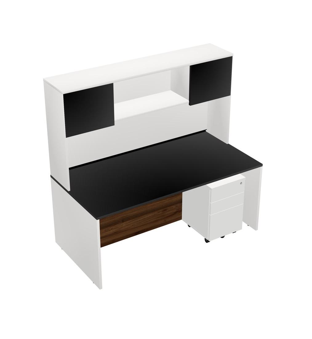 Black Rectangular Office Desk Plus White Wooden Mobile Drawers And White Hutch