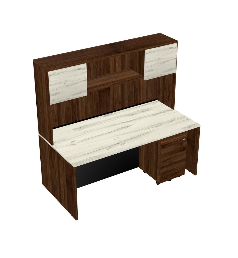 Heinne Holz Rectangular Office Desk Plus Columbia Walnut Wooden Mobile Drawers And Columbia Walnut Hutch