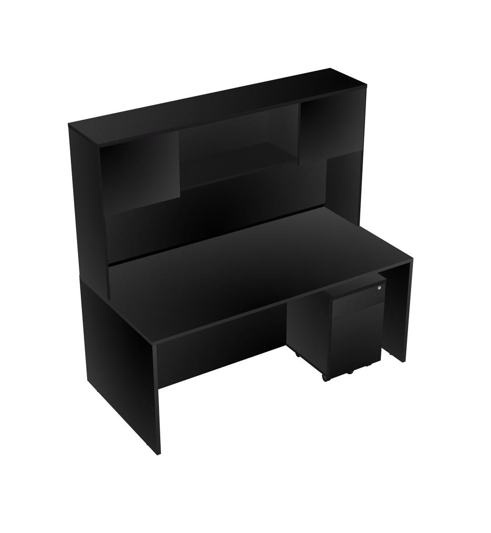 Black Rectangular Office Desk Plus Black Wooden Mobile Drawers And Black Hutch