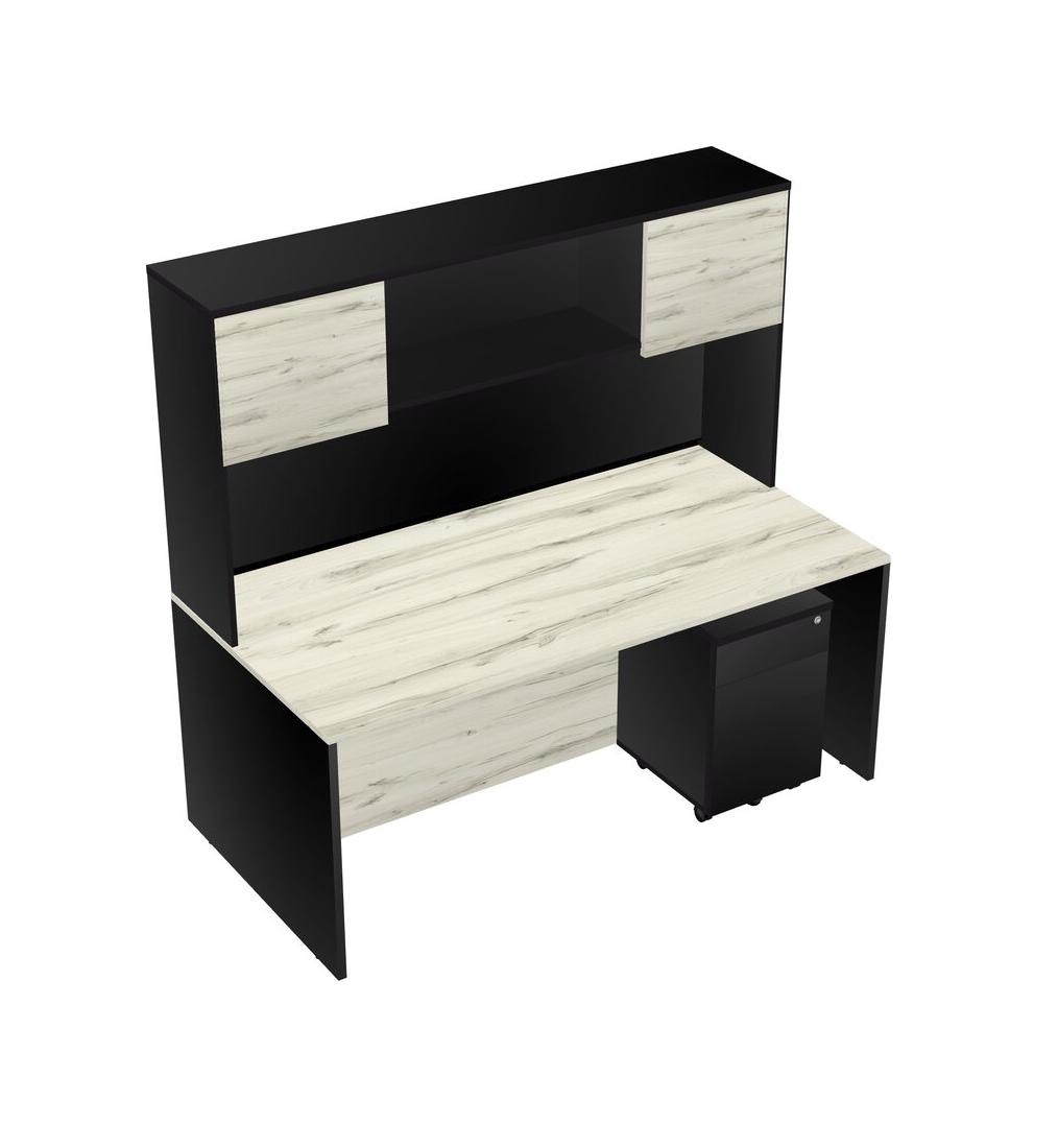 Heinne Holz Rectangular Office Desk Plus Black Wooden Mobile Drawers And Black Hutch