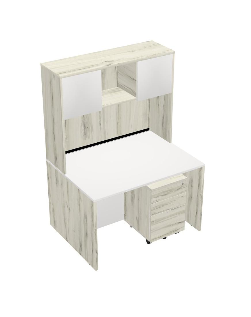 White Rectangular Office Desk Plus Heinne Holz Wooden Mobile Drawers And Heinne Holz Hutch