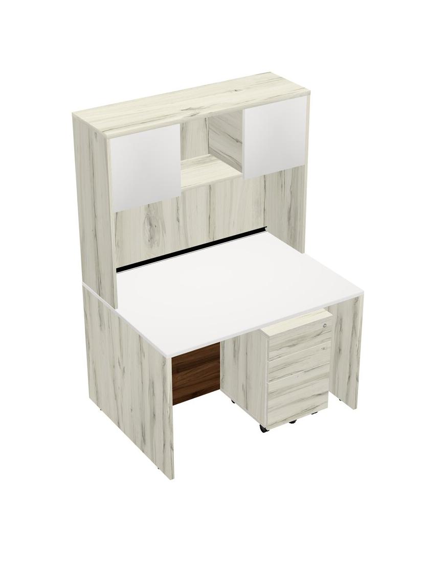 White Rectangular Office Desk Plus Heinne Holz Wooden Mobile Drawers And Heinne Holz Hutch