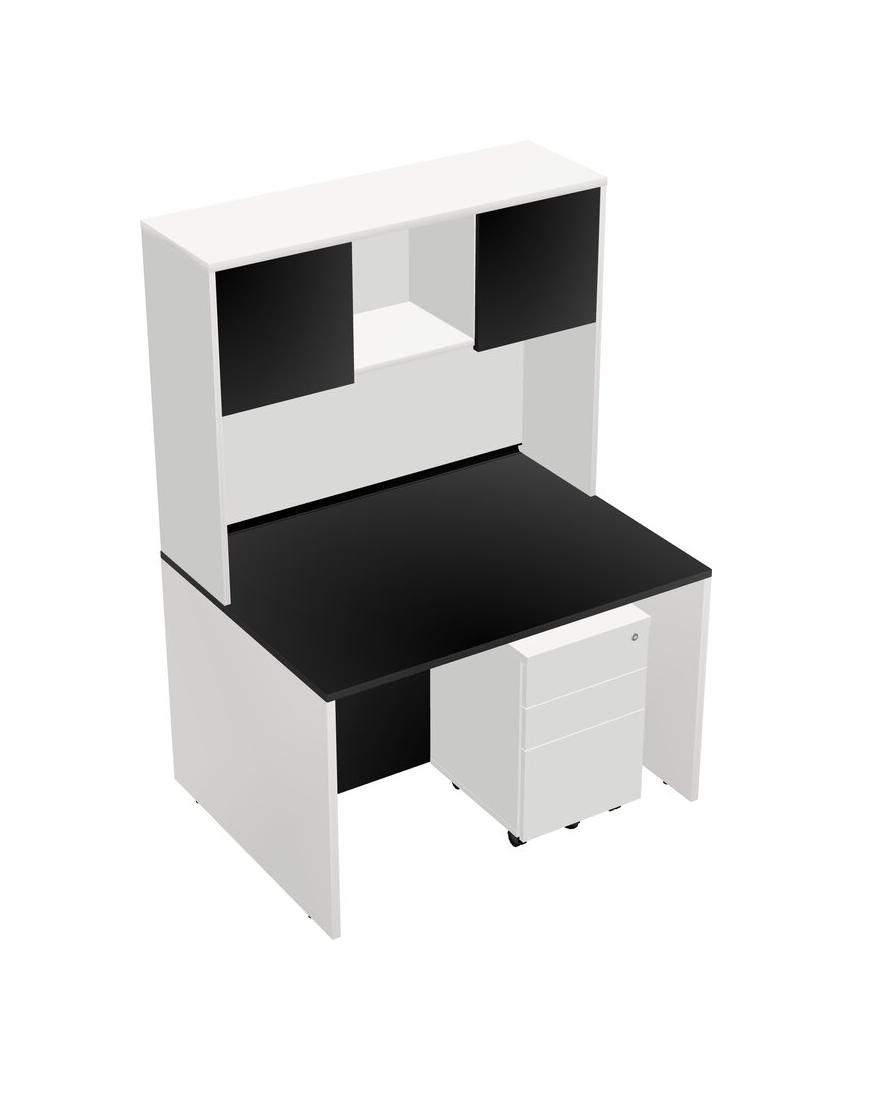 Black Rectangular Office Desk Plus White Wooden Mobile Drawers And White Hutch
