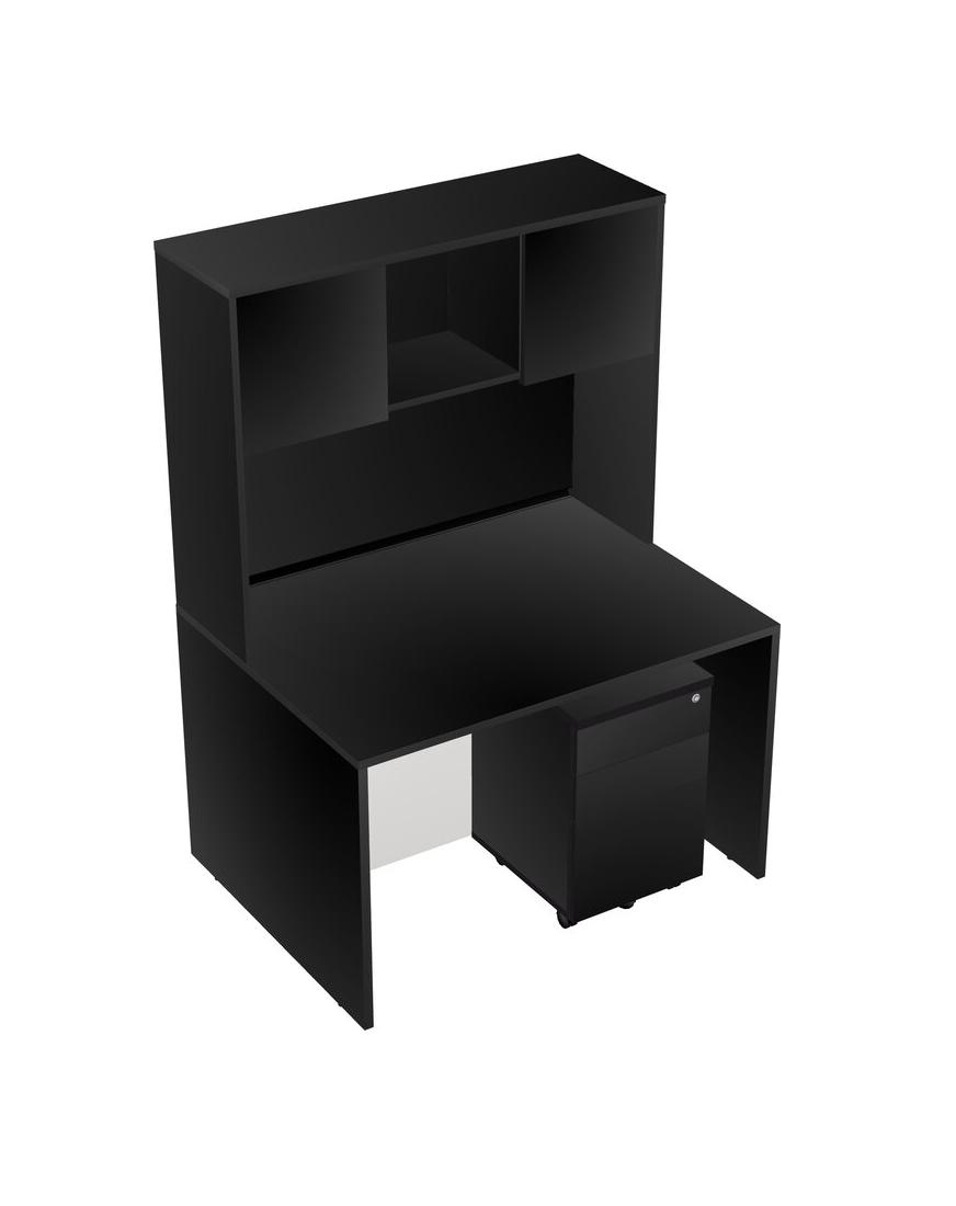 Black Rectangular Office Desk Plus Black Wooden Mobile Drawers And Black Hutch