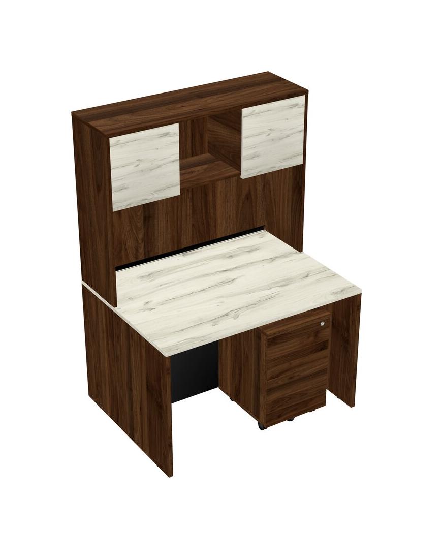 Heinne Holz Rectangular Office Desk Plus Columbia Walnut Wooden Mobile Drawers And Columbia Walnut Hutch