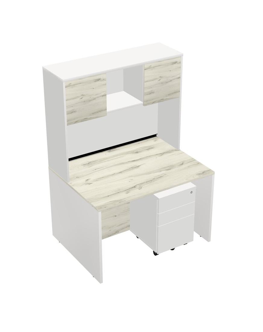 Heinne Holz Rectangular Office Desk Plus White Wooden Mobile Drawers And White Hutch