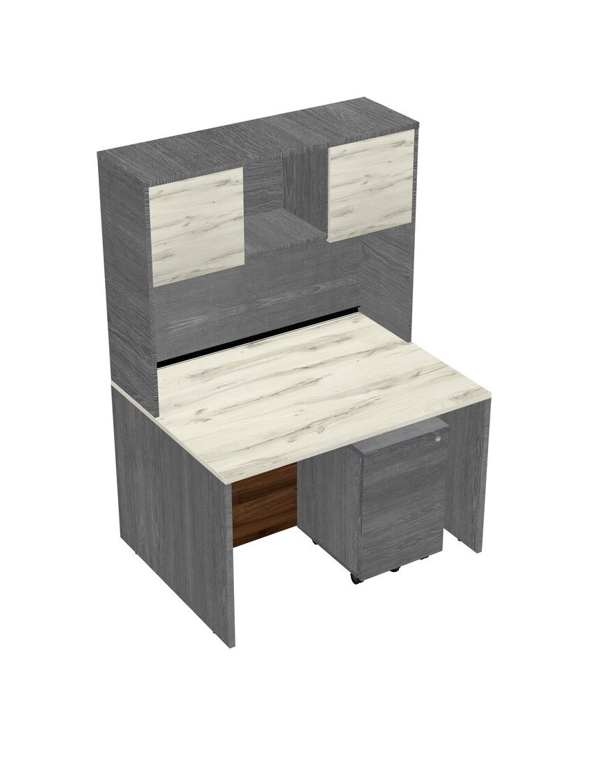 Heinne Holz Rectangular Office Desk Plus Grey Wooden Mobile Drawers And Grey Hutch