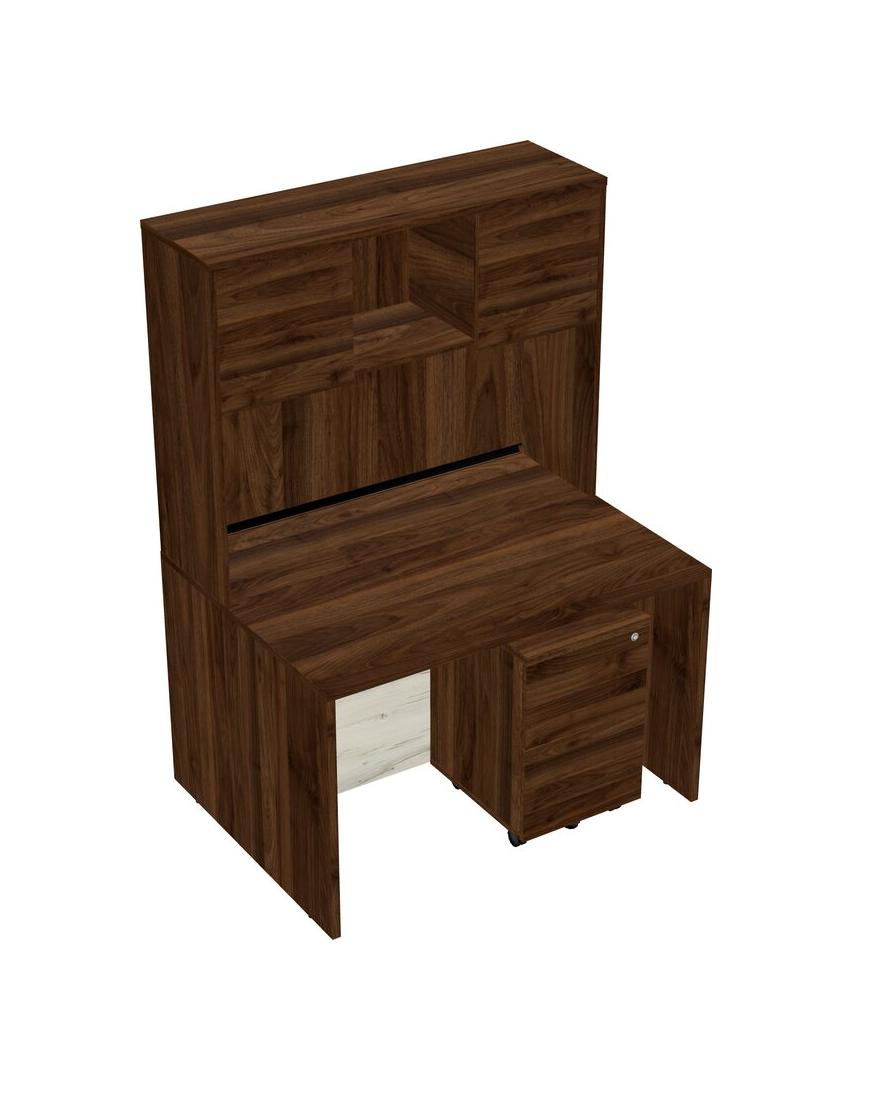 Columbia Walnut Rectangular Office Desk Plus Columbia Walnut Wooden Mobile Drawers And Columbia Walnut Hutch